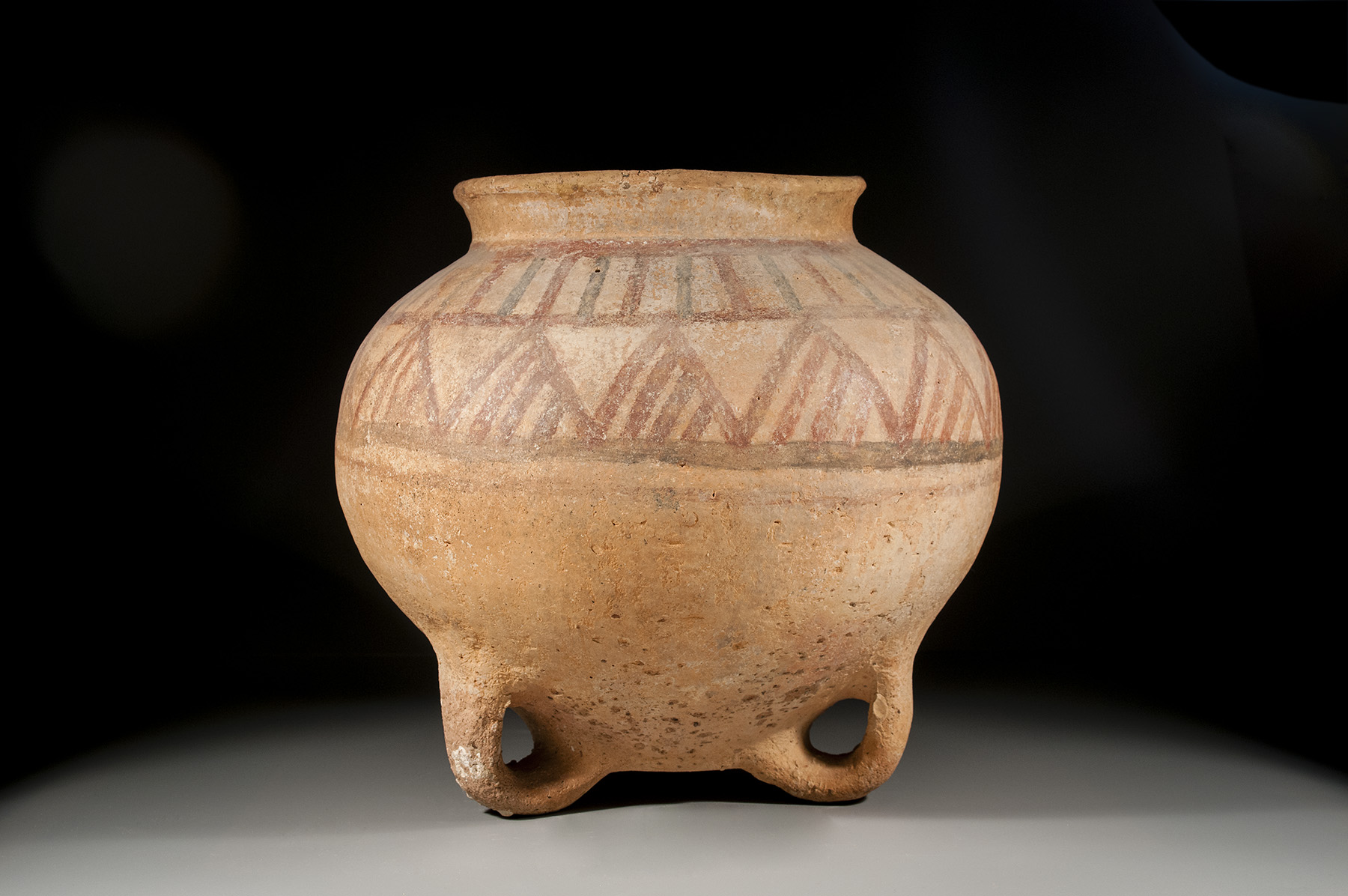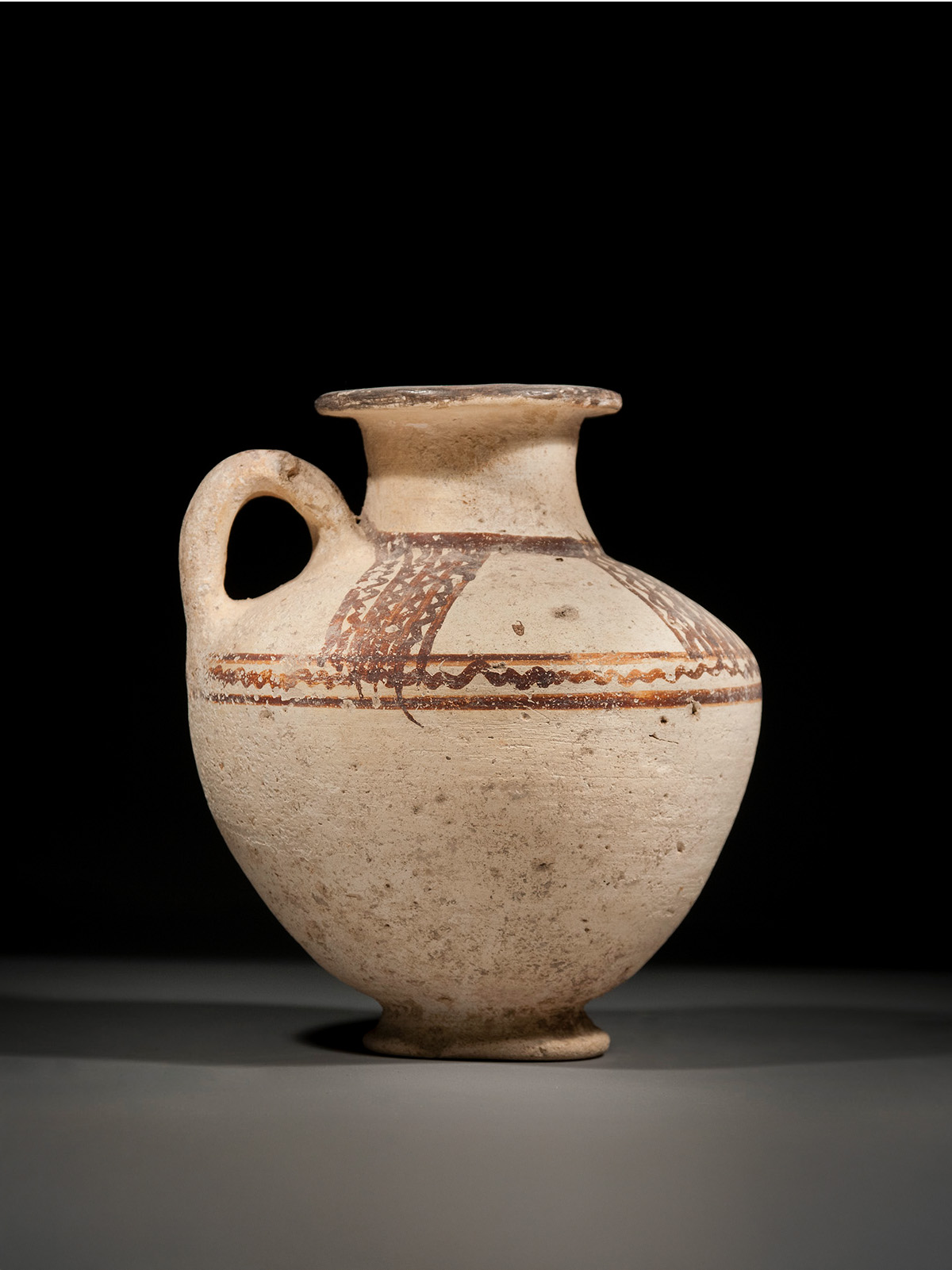 Canaanite Chocolate and White Ware Loop Footed Jar