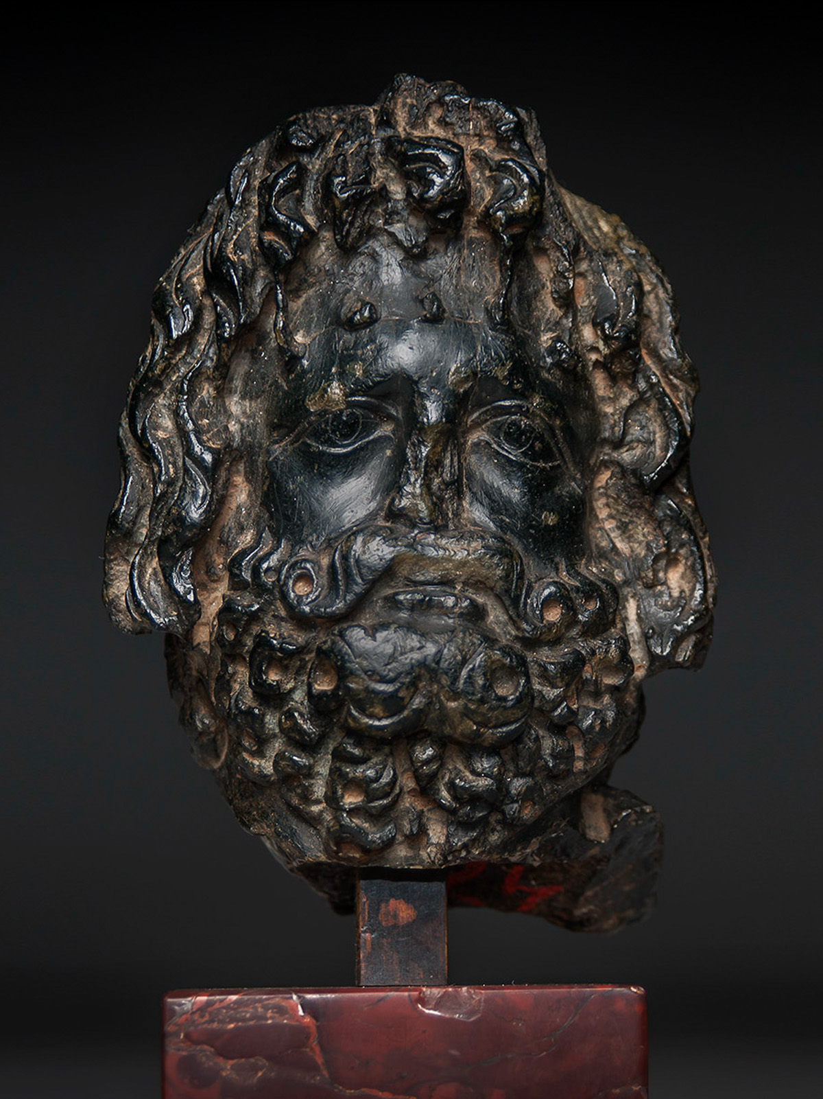 Roman-Egyptian Schist Stone Head Bust of Greco-Egyptian god Zeus Serapis