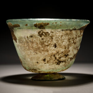 By the time this beautiful aquamarine bowl was blown, Samaria had come under Roman rule, a period of great innovation as new Roman technology filtered throughout the region.