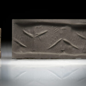 A Mesopotamian Pink Jasper Cylinder Seal with Winged Griffins