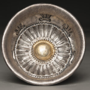 The craftsmanship and fine detailing of this bowl reflect a high level of technological skill, characteristic of the Achaemenid metallurgists. Such a substantial vessel was probably used in prestigious contexts, including royal banquets or religious rituals, serving both a utilitarian and decorative purpose.