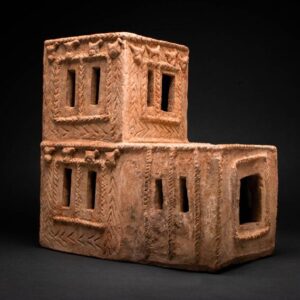 An incredible Mesopotamian architectural terracotta model designed as an ancient Mesopotamian house with two stories. Little and narrow windows were used to preserve the internal rooms from the hot rays of the sun. The second floor with the same characteristics.
