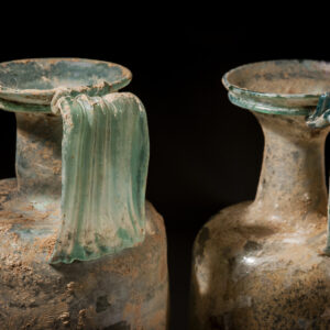 The dull pointed base of this large Phoenician amphora hints to the worker’s toil in an ancient time. With nary a bottom upon which to rest, this vessel would have been lugged by its two handles through the winding streets of a grand Phoenician city. In order to keep tabs on his investment, this vessel’s owner would have used the lovely bichrome decorations that ring its body and neck as a mark of possession, individualizing it among the others in the market.