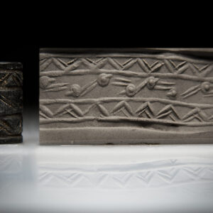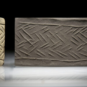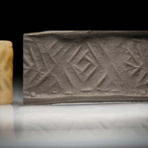 A Neo Sumerian Limestone Cylinder Seal Engraved with a Drinking Scene
