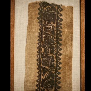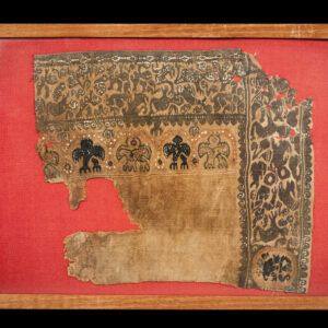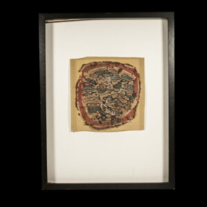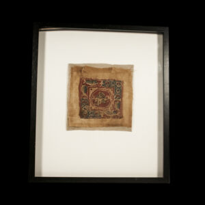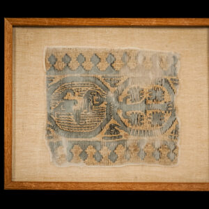 Sewn onto beige linen and framed. Fragment of a tunic or tabula. – Cf. Cat. Leipzig – 2002, 66, 71 nos. 1, 15 with illus.