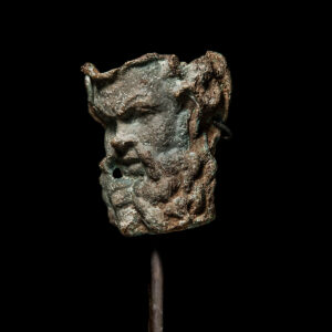 The early date of this piece put it in the Illyrian (i.e. Macedonian and Albanian) kingdom of the Enchelei, an 8th and 7th century B.C.E. polity focused around Lake Ohrid in what is now Albania and Macedonia. Their economy appears to have been based mainly on fishing, and they had extensive trade networks with Greece. They also had an uneasy relationship with local tribes including Macedonians and the Dardani, among others, and the fact that they seem to have spent much of their time at war may explain why so much of their art and material culture is based around warrior-like iconography and accessories. A helmet such as this would have been worn by a lightly-armed foot-soldier (or Hoplite, in Greek terms), and was designed for skirmishing. This is an evocative and impressive piece of ancient art.