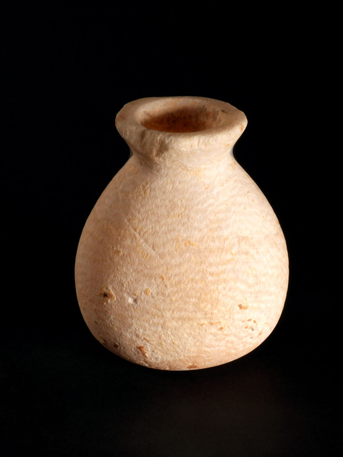 This object likely served both personal and ritual functions, used to contain precious oils or perfumes for daily grooming, anointing, or sacred ceremonies. Its refined material and careful execution reflect the value placed on aromatic substances in Israelite society and suggest ownership by an individual of some standing. Found in Jerusalem. Iron Age, First Temple Period (circa 10th–6th centuries BCE).