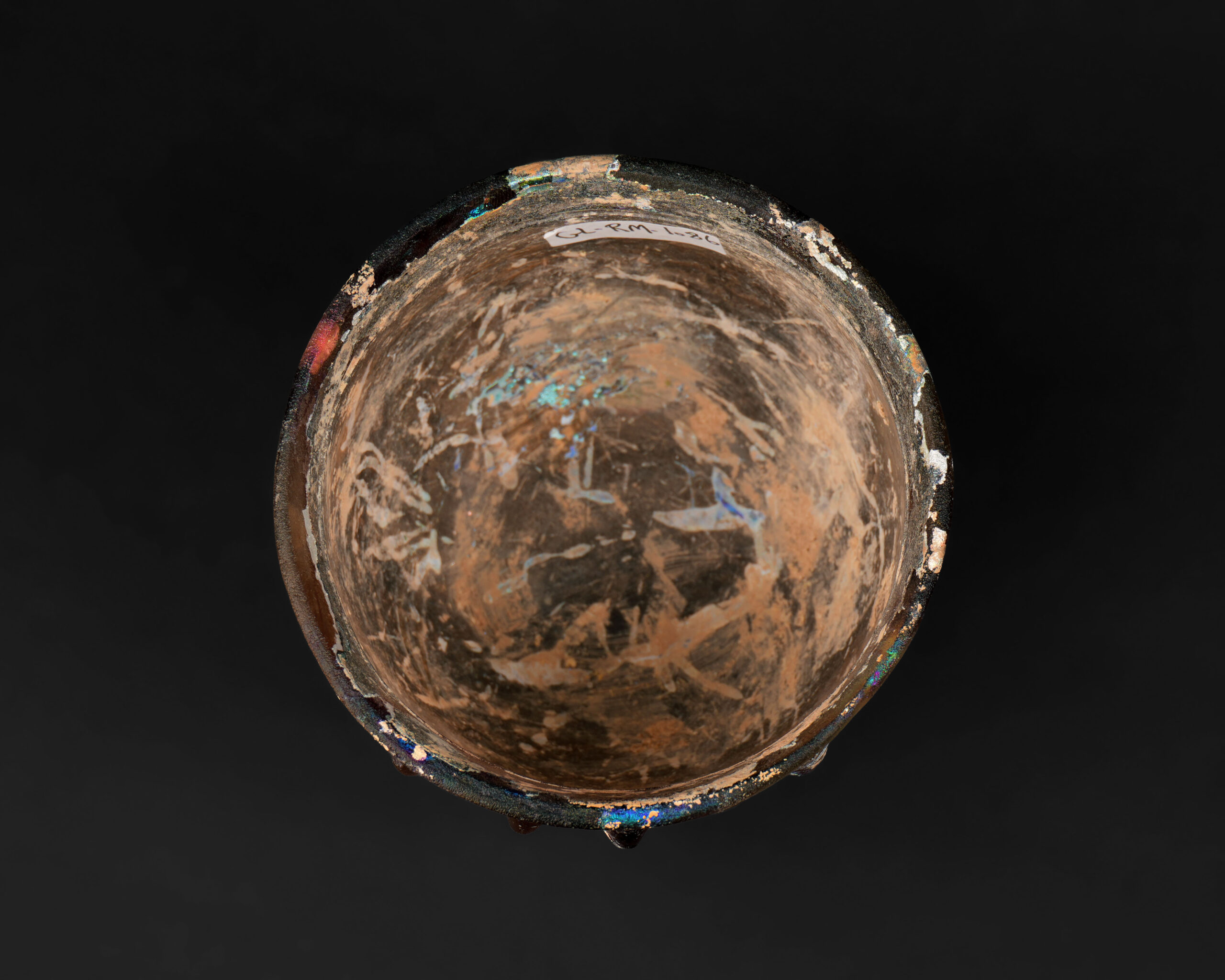 Likely used for both every day and display purposes, this bowl would have served as a functional domestic vessel and possibly as a valued item within a household’s tableware. Its durable glass, sophisticated surface effects, and rare coloration reflect both the aesthetic sensibilities and material culture of the early Imperial period. Found in Sabaste; early Roman, ca. 1st century AD.REFERENCE #