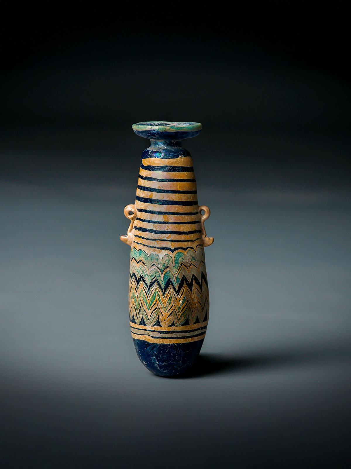 Literature: A less elegant example is illustrated in E. Marianne Stern, Birgit Schlick-Nolte, ‘Early Glass of the Ancient World, 1600 BC-AD 50. The Ernesto Wolf Collection’, (Germany, 1994) pp. 204-205.