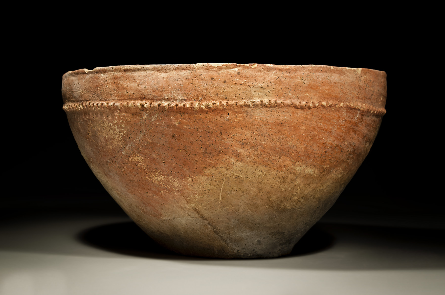 A large red slip Canaanite bowl with incised collar