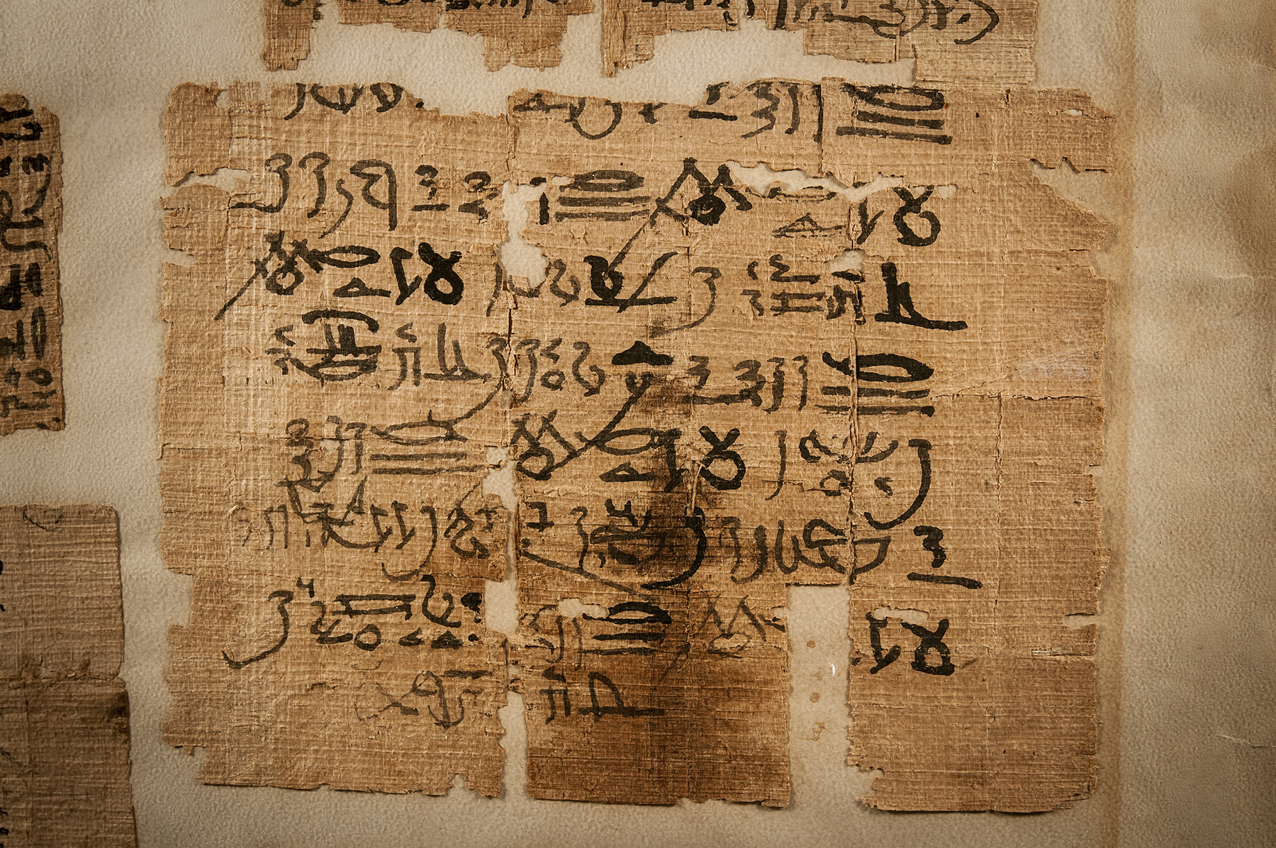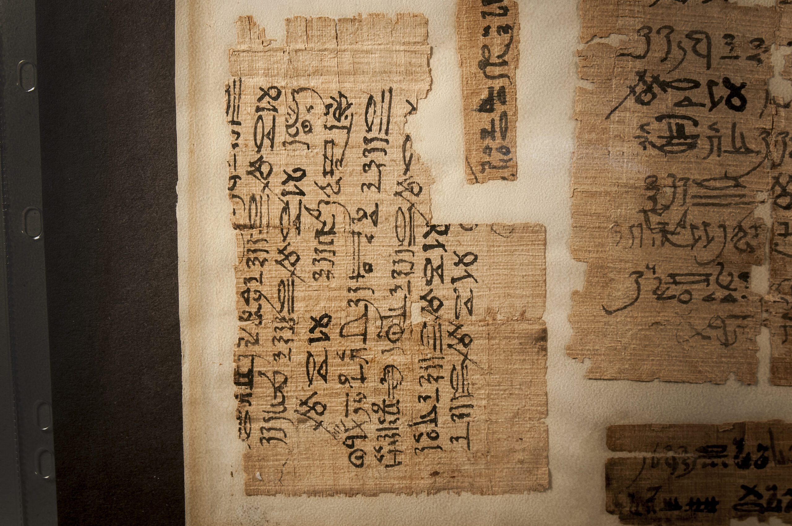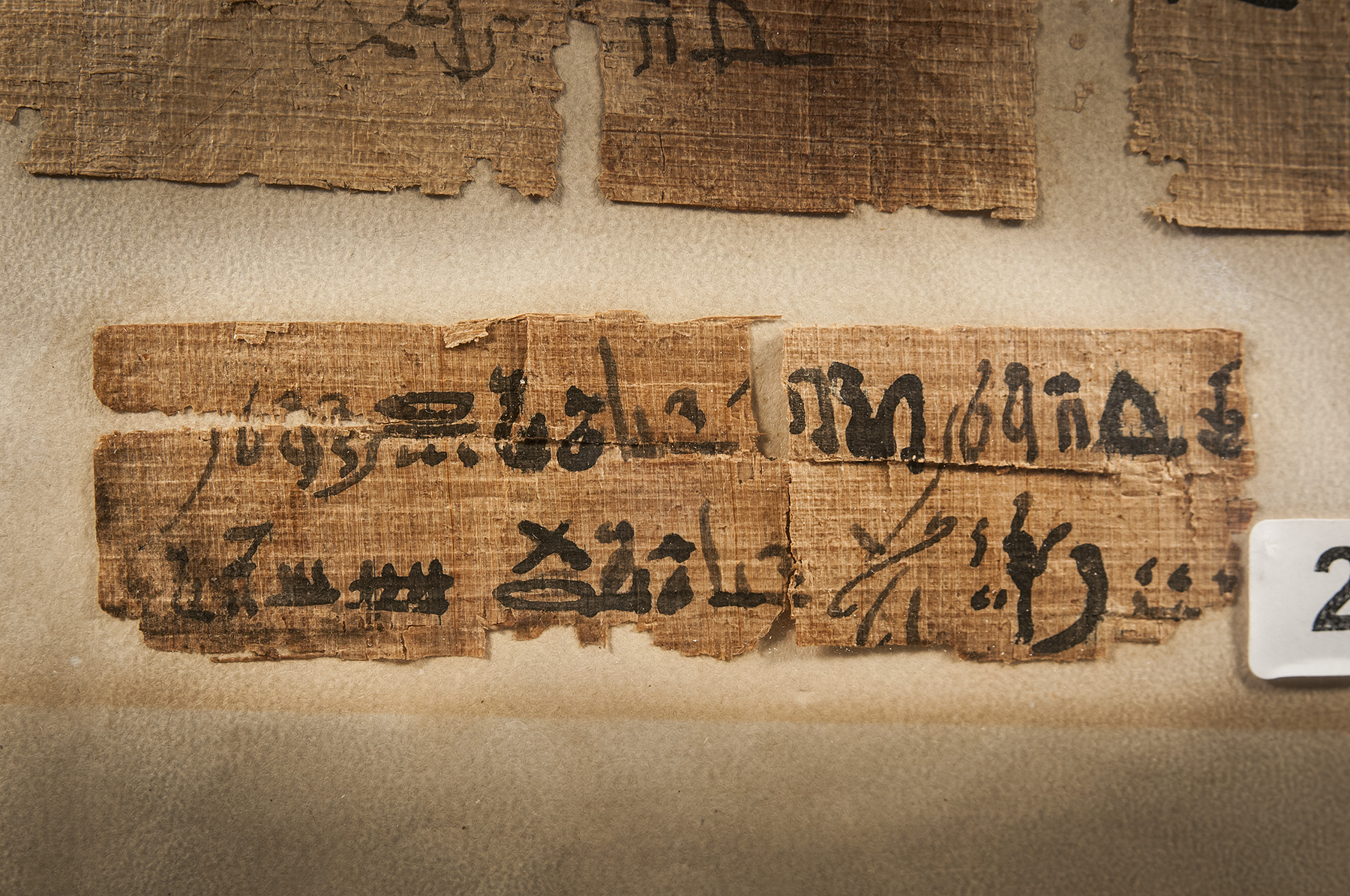 Featured here are several papyrus fragments of the Egyptian Book of the Dead from Egypt’s Ptolemaic Era (305 – 30 BCE). Examining Egyptian art during these 300 years reveals strong continuities in its traditions but also interactions with Greek art, whose forms and styles swept the world with Alexander’s armies. The encounter of the two cultures had many aspects and phases, and is easiest to comprehend by looking first at the new ruling class, its involvements and concerns, and then at religion and the arts in the greater land of Egypt.