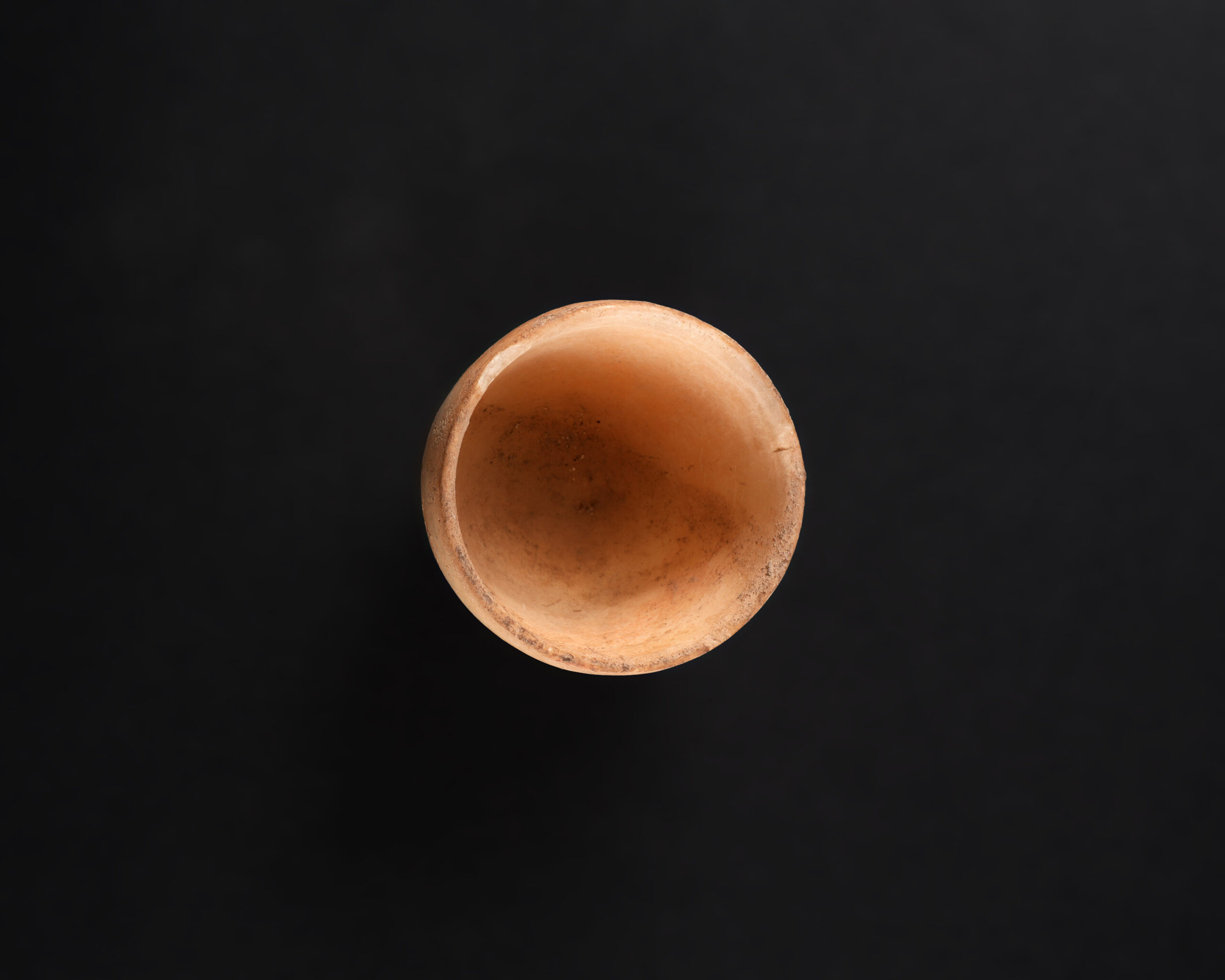 The use of alabaster, a soft stone prized for its translucence and smooth finish, suggests the object was valued and possibly used in ceremonial contexts. Both the interior and exterior surfaces have been polished to a glossy, refined texture, with no visible signs of damage or deterioration. Its translucent quality would have enhanced its visual appeal when held in light, creating a delicate play of shadow and glow.